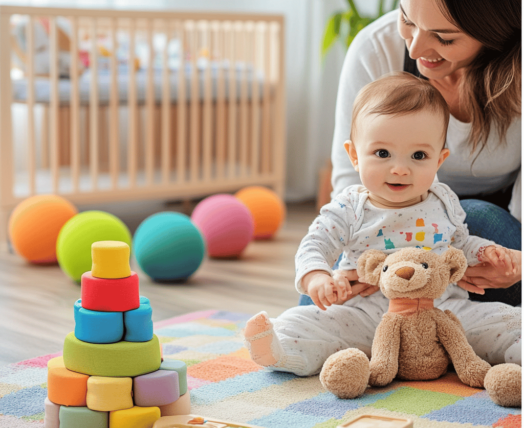 Desarrollo Motor: Juguetes que requieren que tu bebé agarre, apile o manipule objetos mejoran la coordinación mano-ojo y fortalecen sus músculos. Juguetes como apiladores, pelotas y juguetes de encaje son ideales para este propósito.